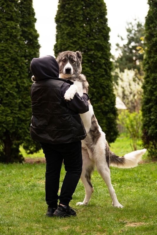 Мансур очень крупный, высокий, красивый, шикарный, благородный, отлично сложен (крепкий, длиннолапый). Здоров, привит, кастрирован, есть ветпаспорт. Готов к проживанию в частном доме (не на цепи!). Лучше в свободном передвижении по участку, при условии капитального крепкого забора, в вольере жить не хочет.