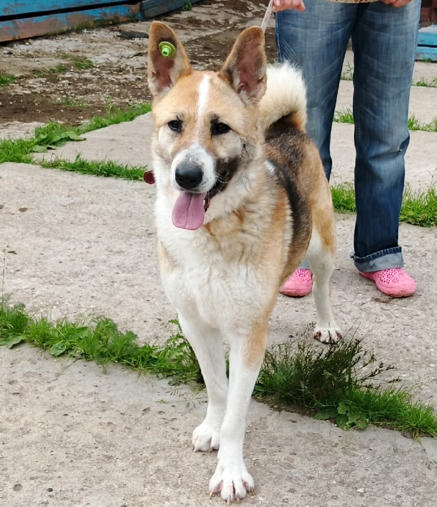 Зирочка хорошо сложена, стройная и подвижная. Имеет интересную трехцветную окраску. В ней есть много от лайки, есть своя "изюминка" - кучерявая шерстка на спинке. Зира метис и поэтому неповторима.
