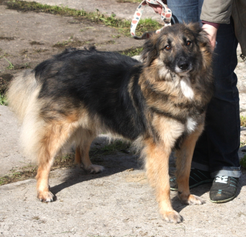 Скромненькая, аккуратненькая, чистоплотная девочка, ласковая, добрая и зависимая от людей, ищущая защиты у человека. Очень приятная в общении, комфортная на прогулках, слышит и в основном слушается человека (иногда не слушается только когда после прогулки надо заходить в вольер - очень ей хочется ещё хоть немножко побыть рядом с человеком).
