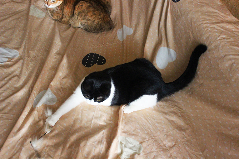 Активна, подвижна, обожает всякие игры, но хвостом ходит за человеком в поисках погладушек. Обожает сидеть на ручках, спать в постельке.