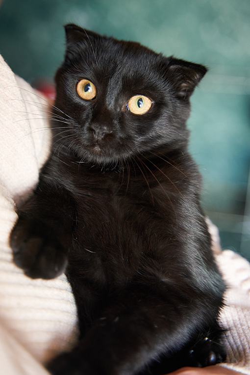 Чёрный котёнок Марио - метис вислоушки в дар