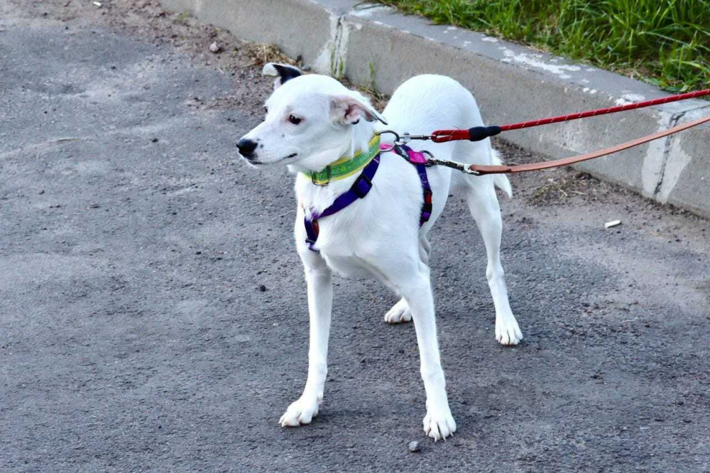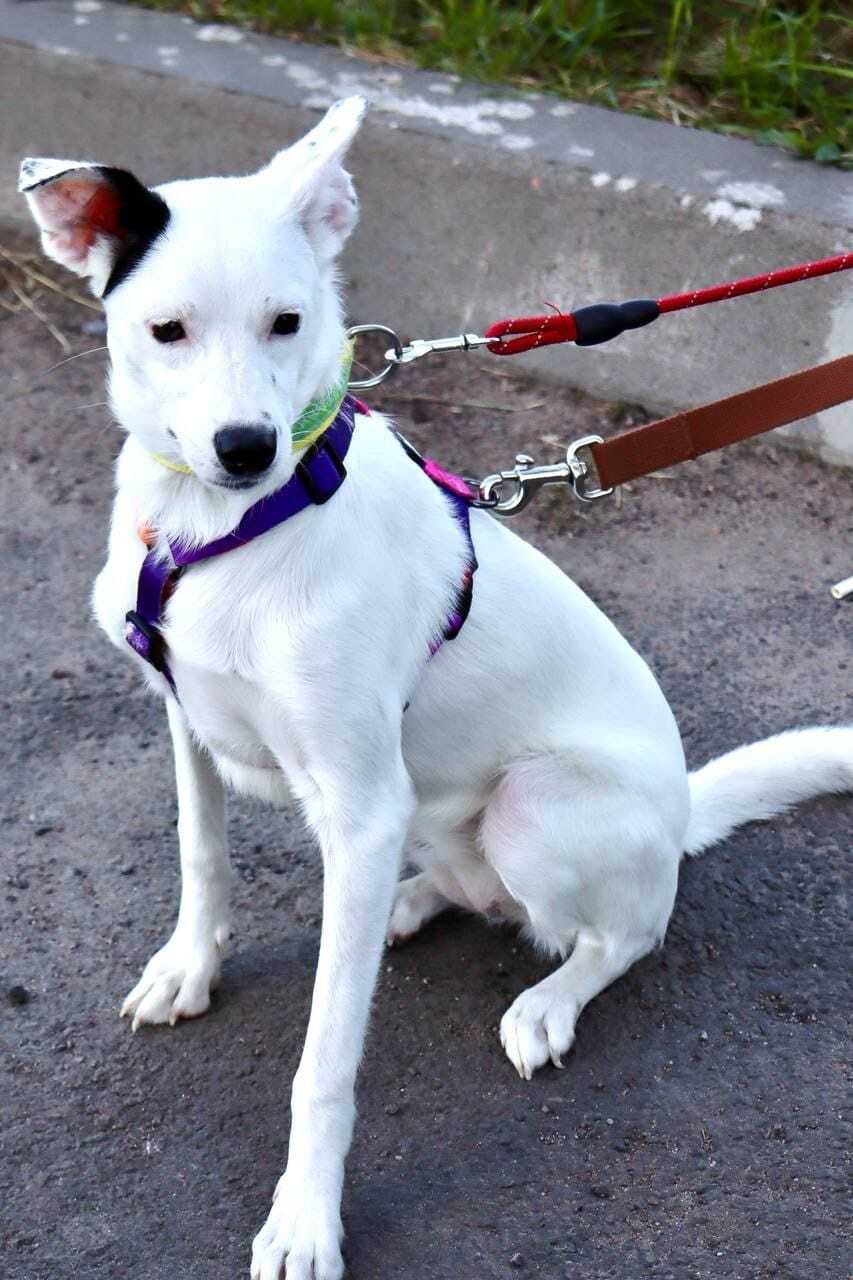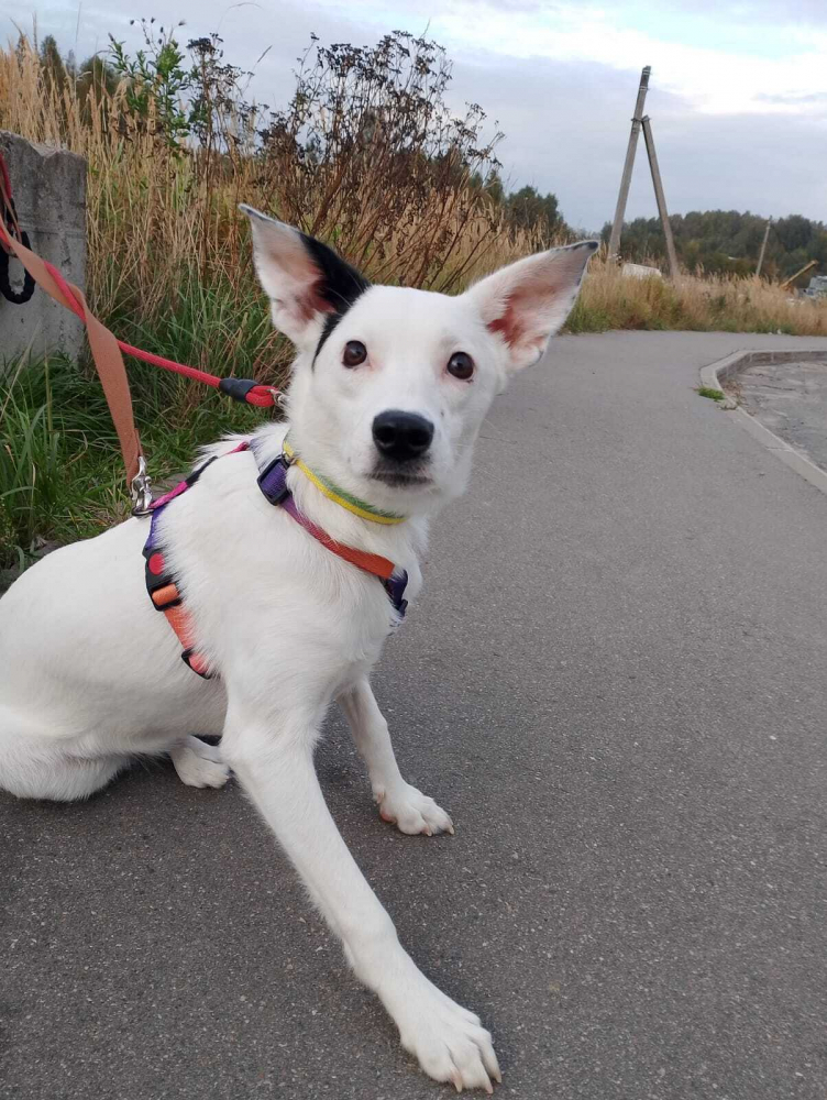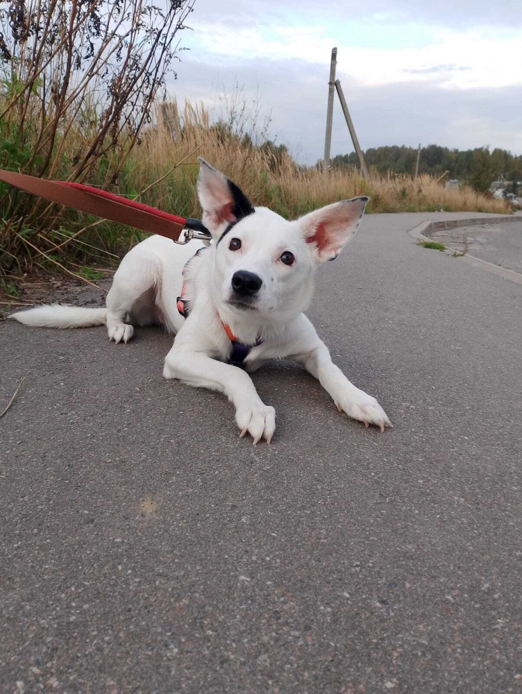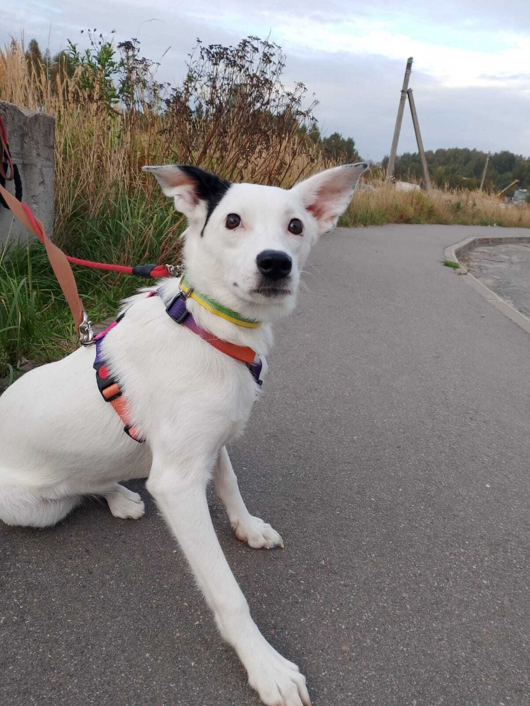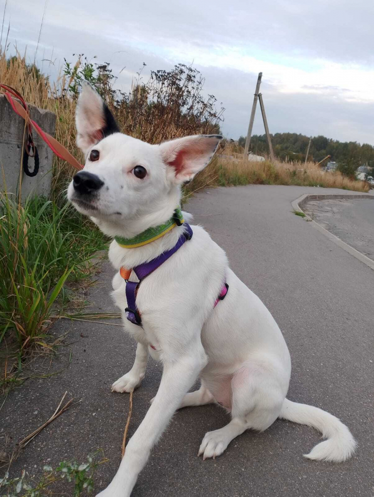 Красивая беленькая собачка с нежным характером. Игривая, общительная, дружелюбна с другими собаками.