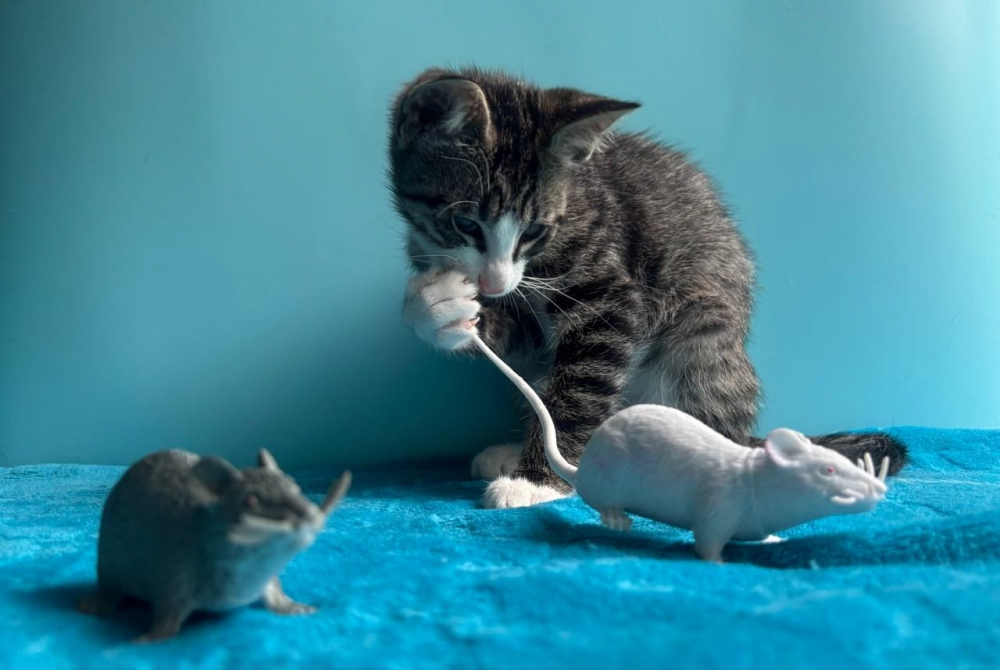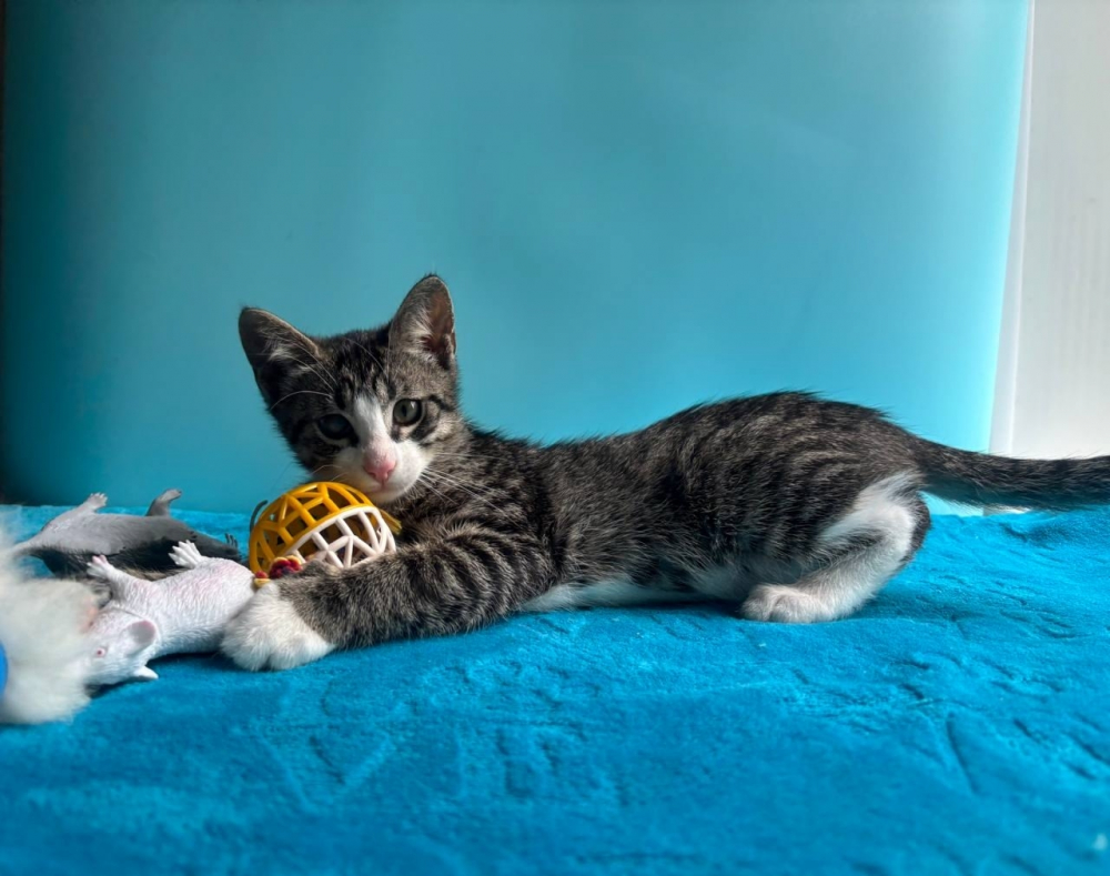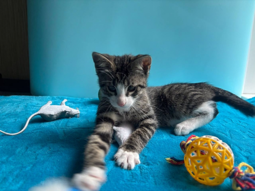 При этом малыш очень ласковый и любит помурчать на ручках, передохнуть чуток от игр.
