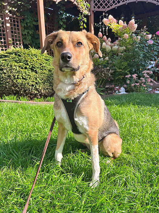 Солнечная молодая собачка Шанти, отличный компаньон ищет дом