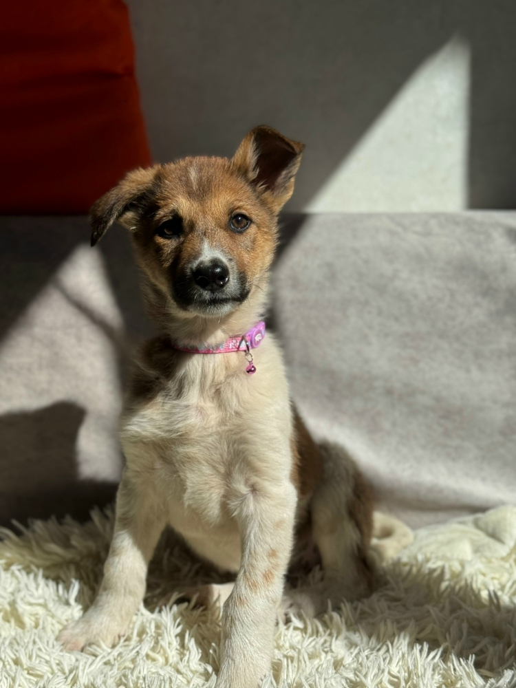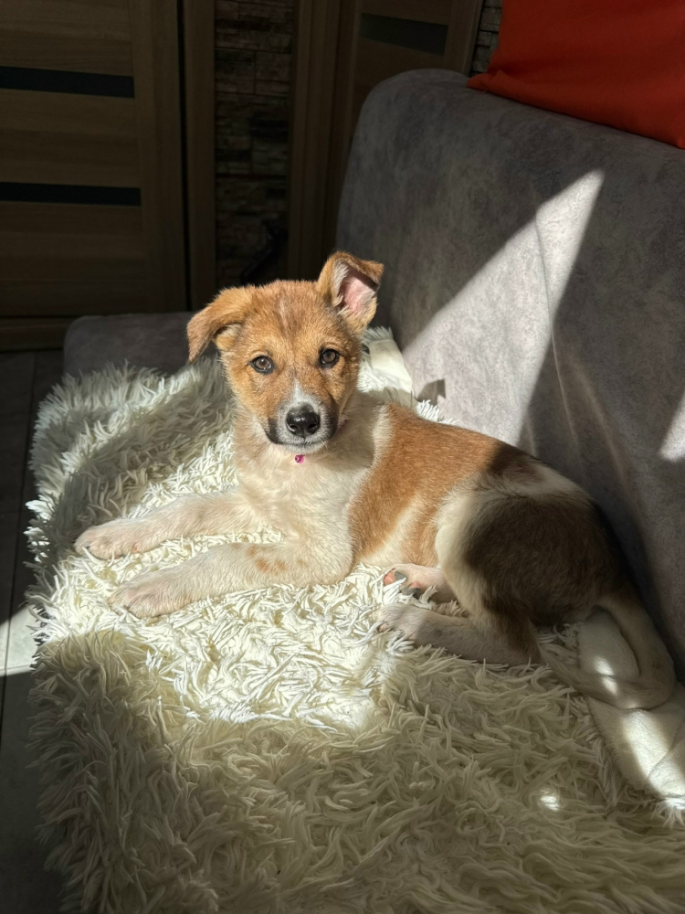Белая с рыжим девочка - Мила. Умная, любознательная, безумно игривая. Больше всех любит играть в отнимашки.