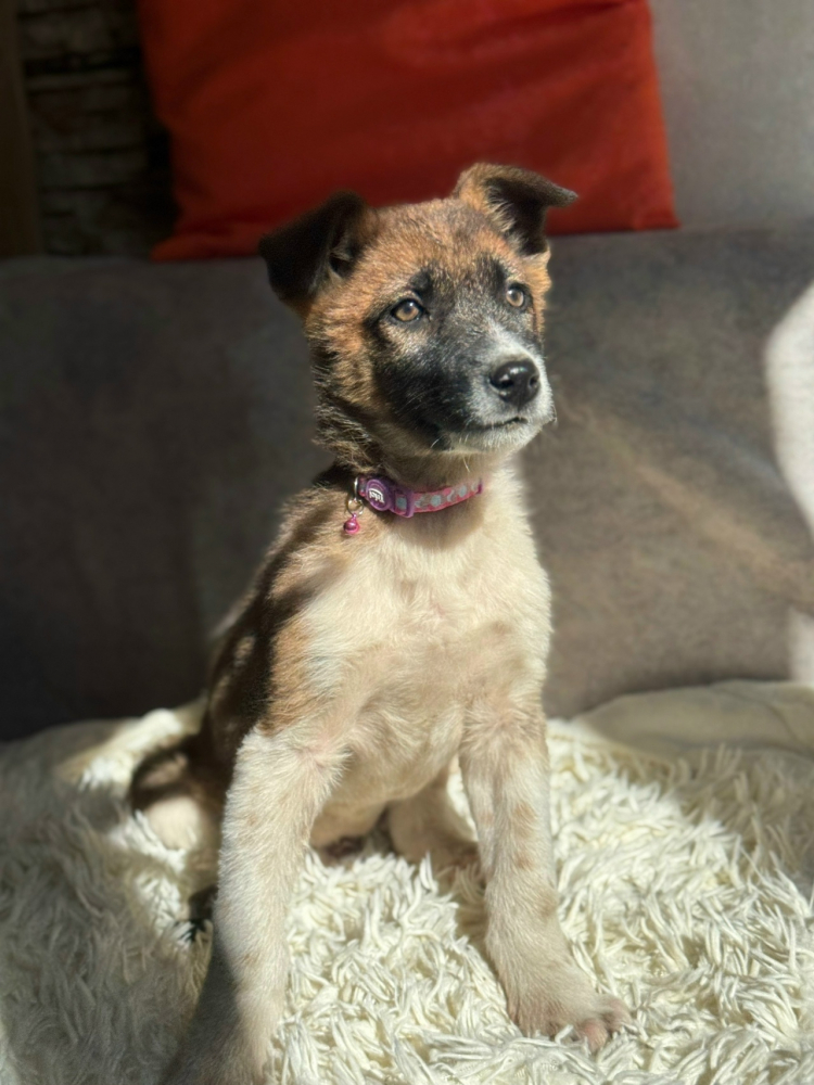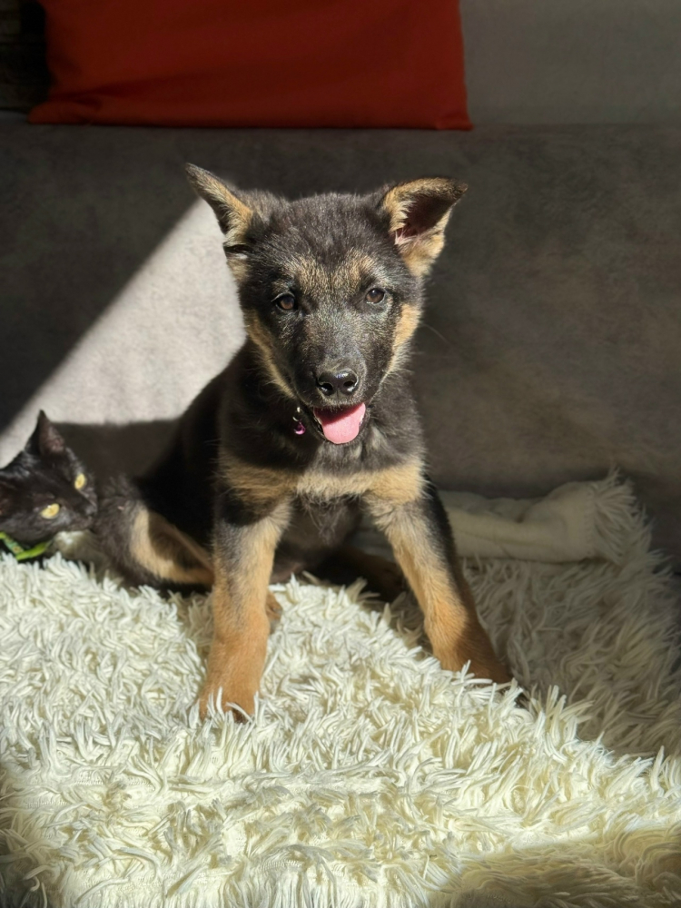 Мини-овчарочка - это девочка Буся. Вес 5 кг. У нее замечательный добрый характер. Она веселая и игривая, очень хорошо относится к кошкам. Любит кататься на ручках.