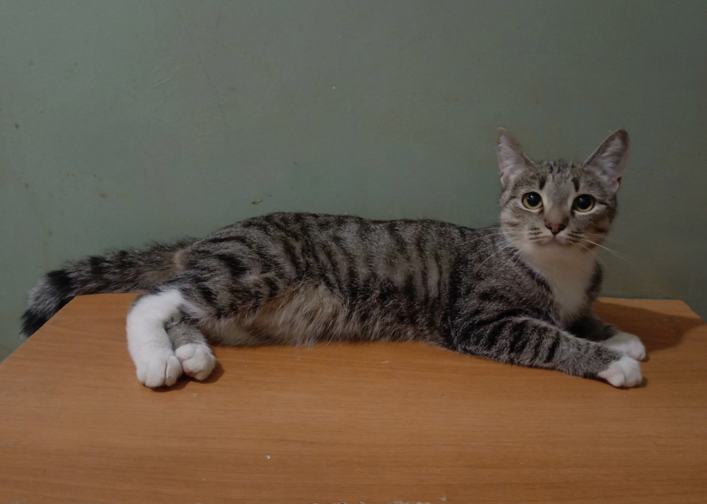 Возраст примерно 1, 5 года. Контактная с людьми. С другими животными ладит с кастратами. С крупными кошками нет