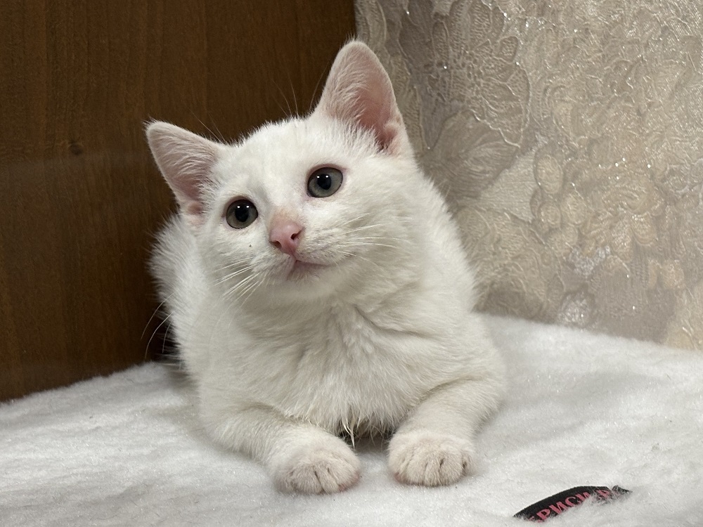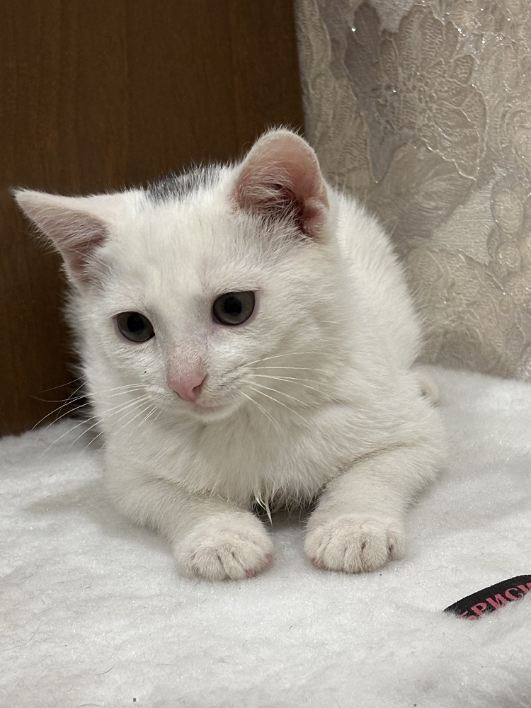 Белый мальчик Юки (по-японски значит снег). Возраст 3 мес. Малыш с прекрасным характером. Добрый, ласковый, контактный. Любит покушать. Прекрасно ходит в лоток. От глистов обработан.