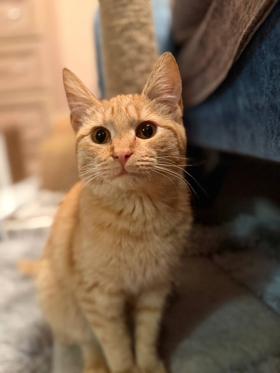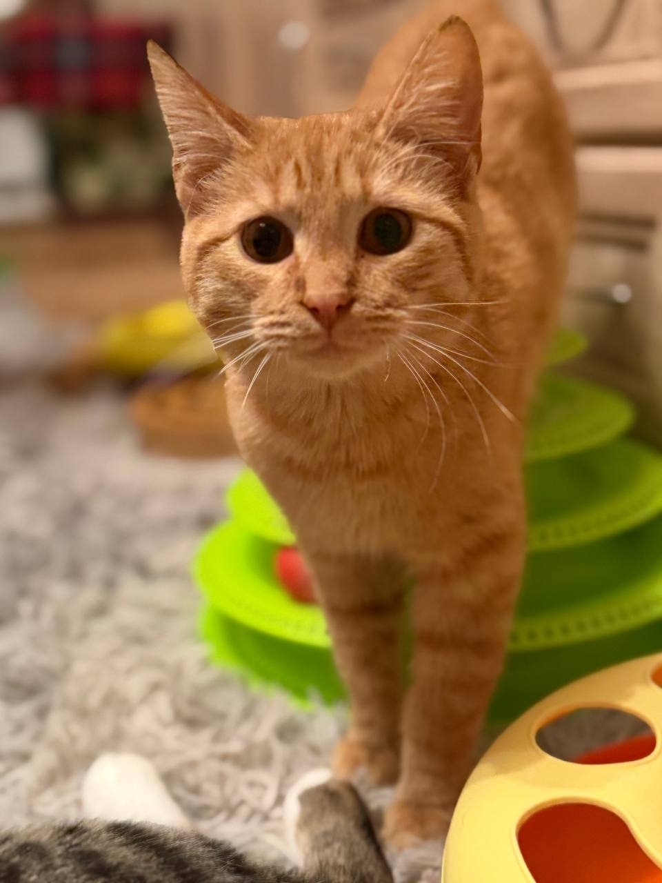 Рыжик приучен к лотку, чистенький, хорошенький. Ему нравятся мягкие лежаночки. Любит посидеть рядом в компании, когда устанет наводить порядок в игрушках.
