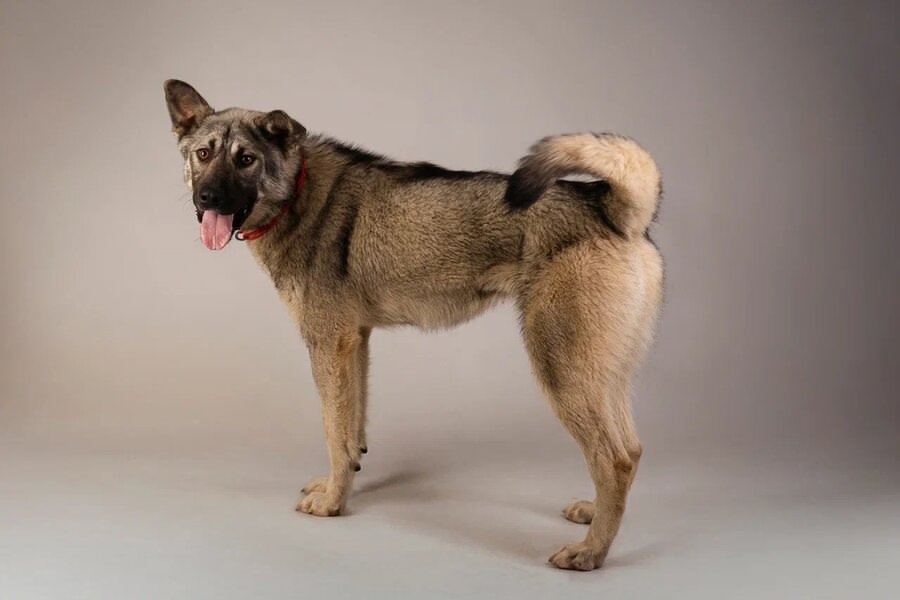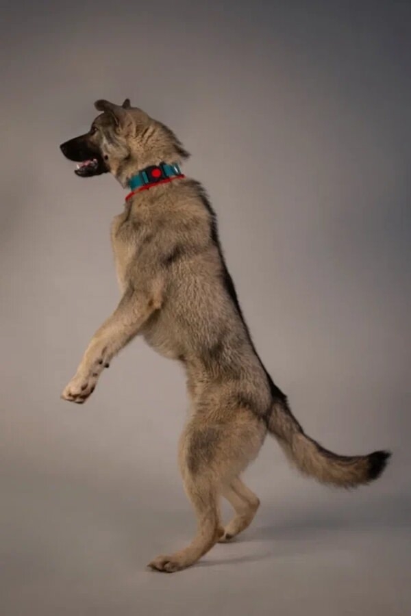 К слову он совсем не крупный, он всего лишь 50 сантиметров в холке(чуть ниже колена) и весит около 15 кг, так что расти больше не будет в силу возраста, т.к. ему около года, будет набирать только массу.