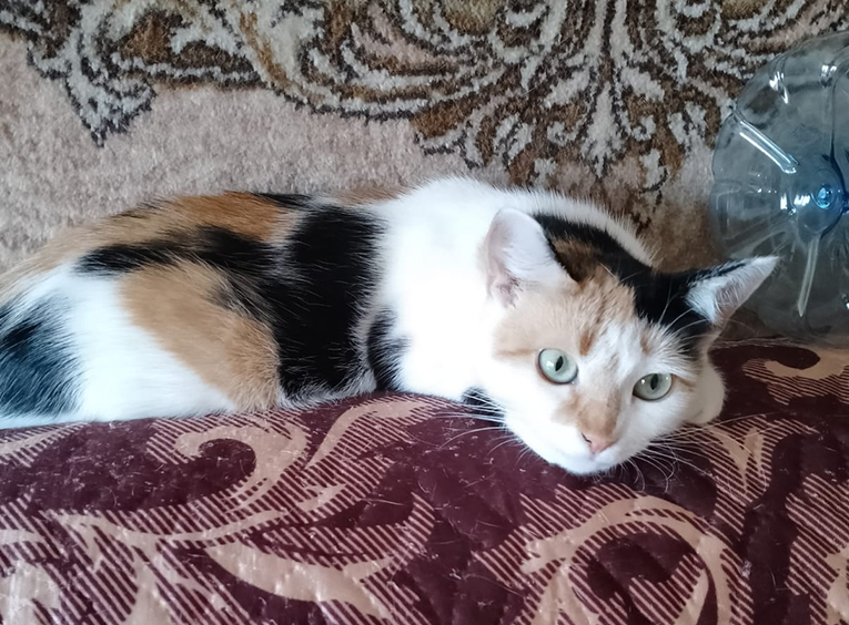 г. Раменское. Кошечка 1.5 года, трёхцветная, домашняя, к лотку приучена, с другими животными ладит, игривая, общительная, к лотку приучена. Ищет семью. Звонить по телефонам.