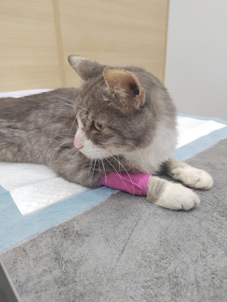 Был истощенным, весил всего 2кг. Сейчас уже почти 3кг, стабильно набирает вес.