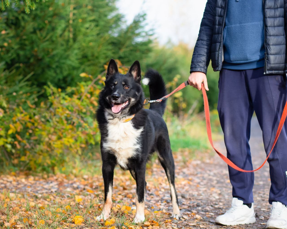 К людям со всей душой, на поводке ходит хорошо, спокойно остаётся один.