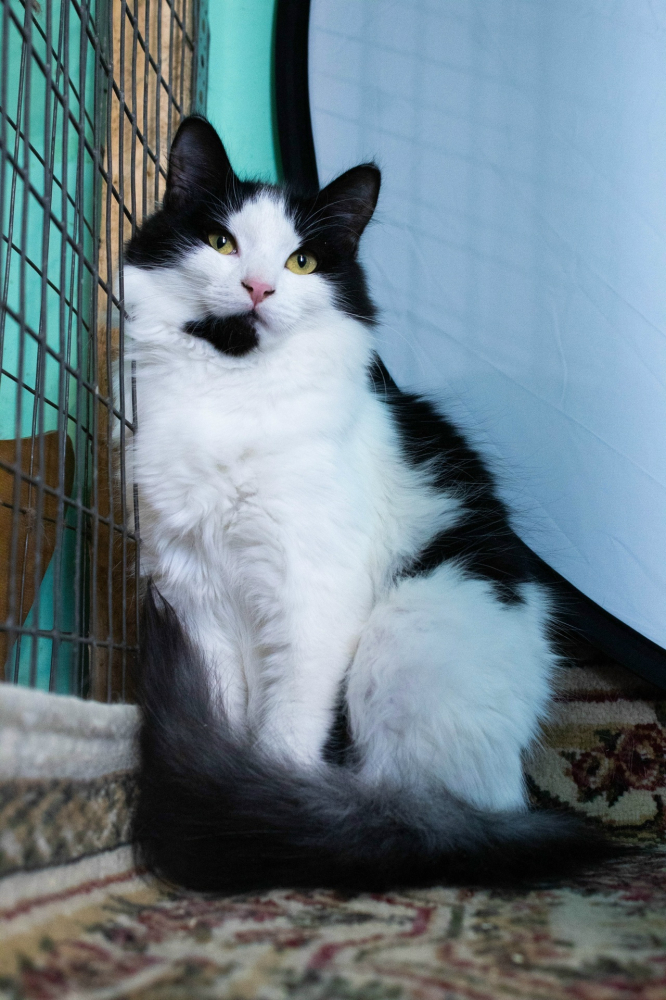Пушистая, изящная как статуэточка, очень красивая юная кошечка.