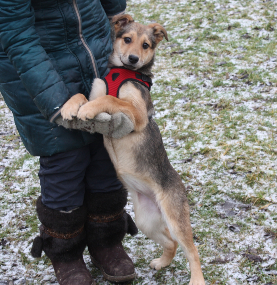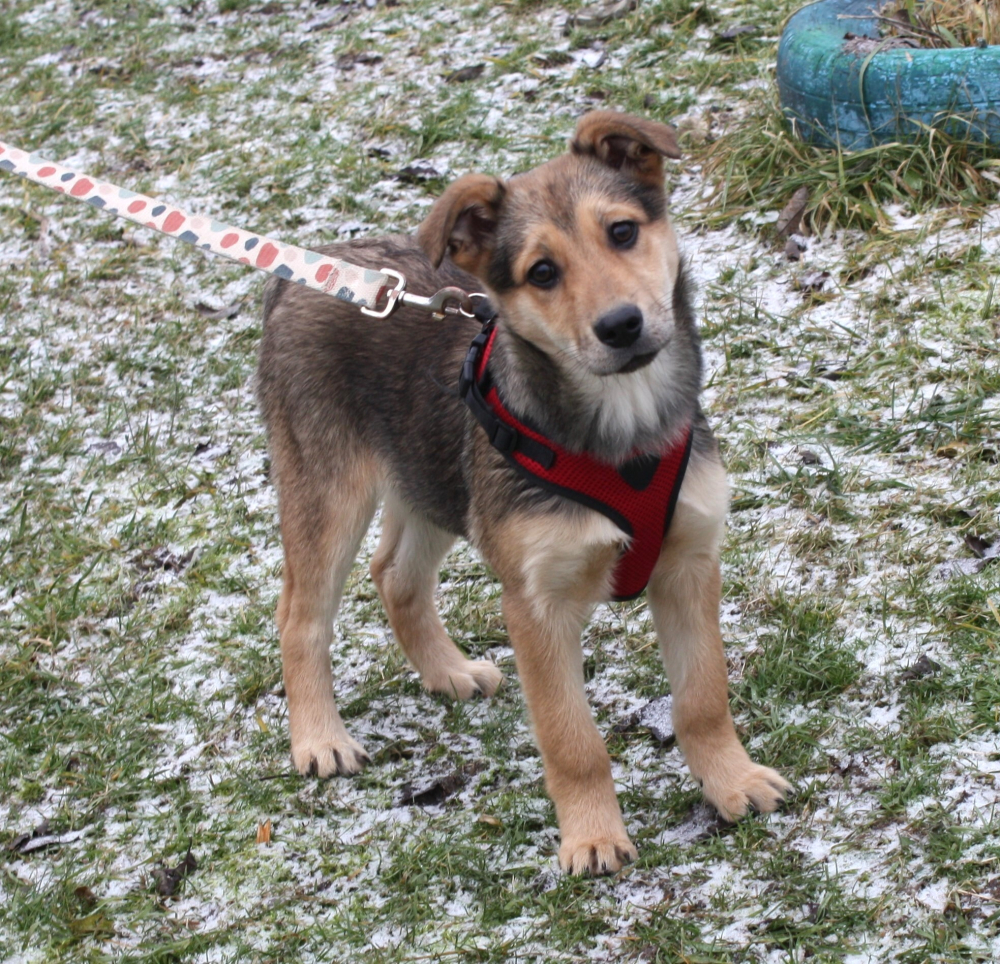 Нюшеньке около четырех месяцев ( малышка спасена крошкой - дата рождения примерно начало сентября 2025 г), проглистогонена, дважды вакцинирована , здорова, оформлен паспорт. Вырастет среднего размера- по колено.