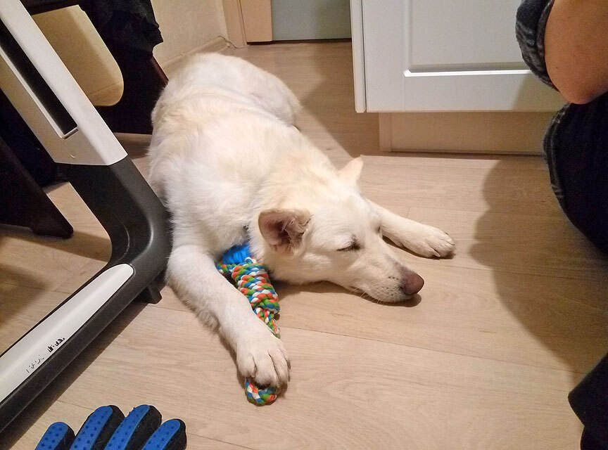 Не шумная: лает только в игре, не скулит, не ноет — дома ведёт себя идеально.