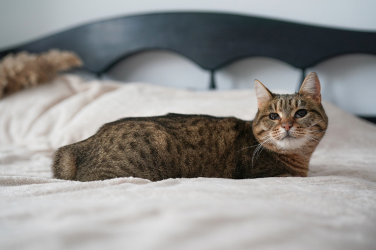 Свободно перемещается в пространстве, кушает, пьет, знает лоточек.