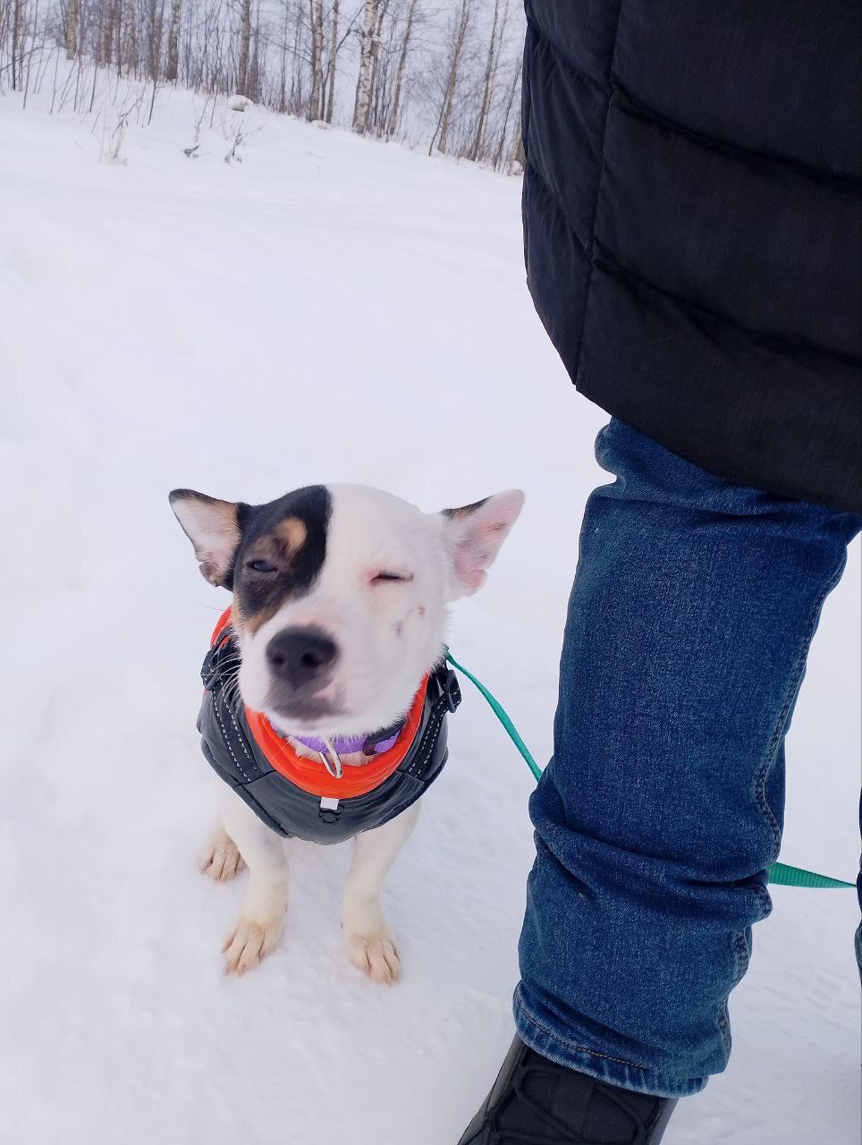 Ласковая, ручная девочка. Учится гулять на поводке и учится премудростям жития в квартире.