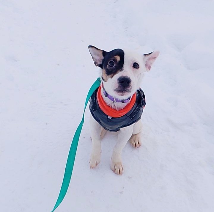 Очень милая и трогательная собачка с красивым окрасом. Ей примерно 1 год. Вес всего около 5-6 кг.