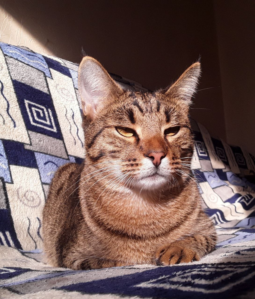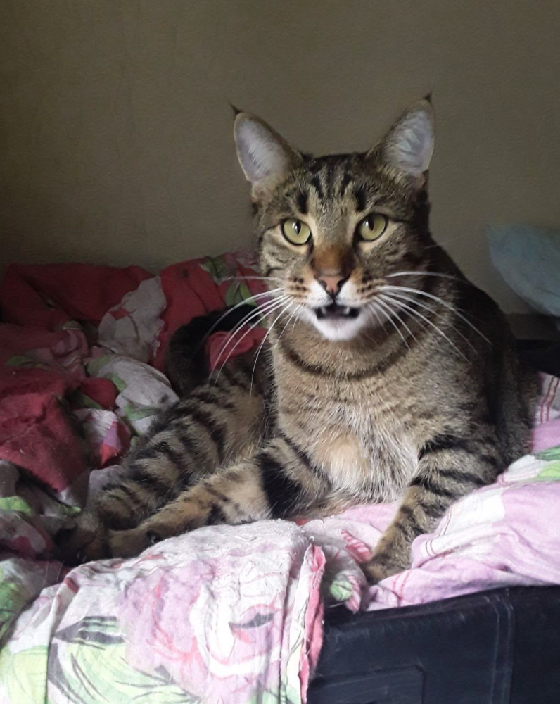 Отлично знает лоток, любит картонные когтеточки и коробки.