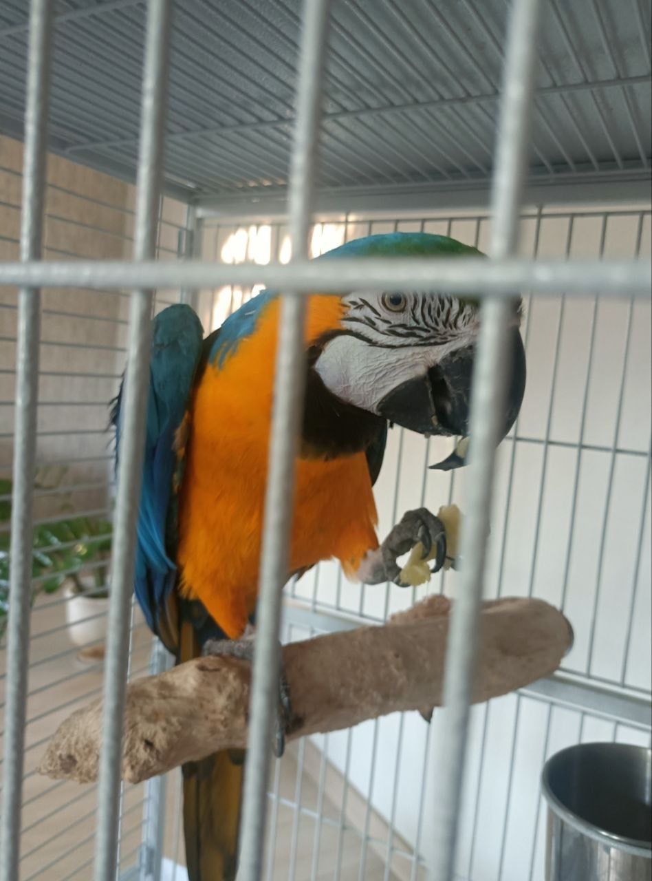 В связи с переездом хозяина, продается попугай Сине-желтый АРА по имени "Григорий". Только в добрые и заботливые руки! Птице 15-17 лет, тактильный, любит общение. Продается вместе с клеткой.