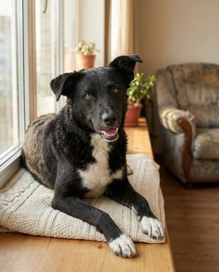 У неё устойчивая психика и живой, тёплый характер. Она не шумная, не гиперактивная, но и не «диванная мебель». В ней есть глубина и мягкость. Та самая собака, после которой в доме становится спокойно.