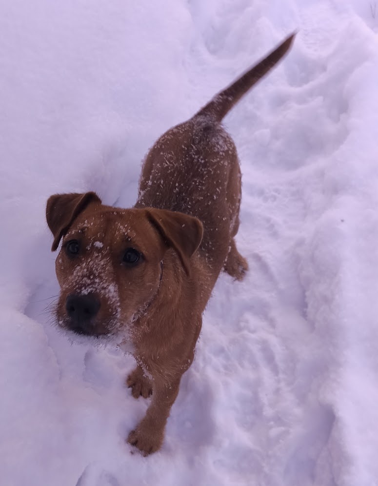 Метис ягдтерьера и питбультерьера, молодая собака.