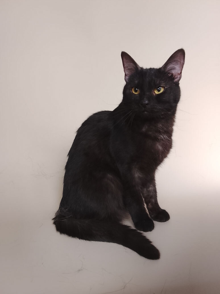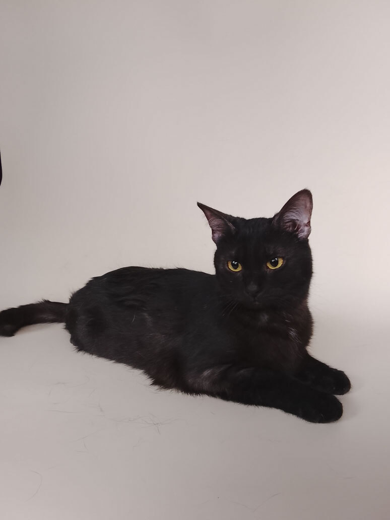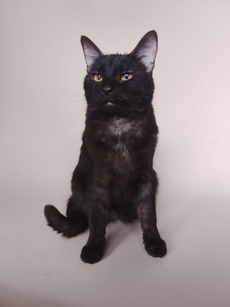 С виду серьезная и сосредоточенная Саби характером ещё совсем ребенок, наивный, доверчивый, озорной. При этом она очень контактная, любит потереться, пободаться, и пузеню доверит, и на ручках полежит помурчит.