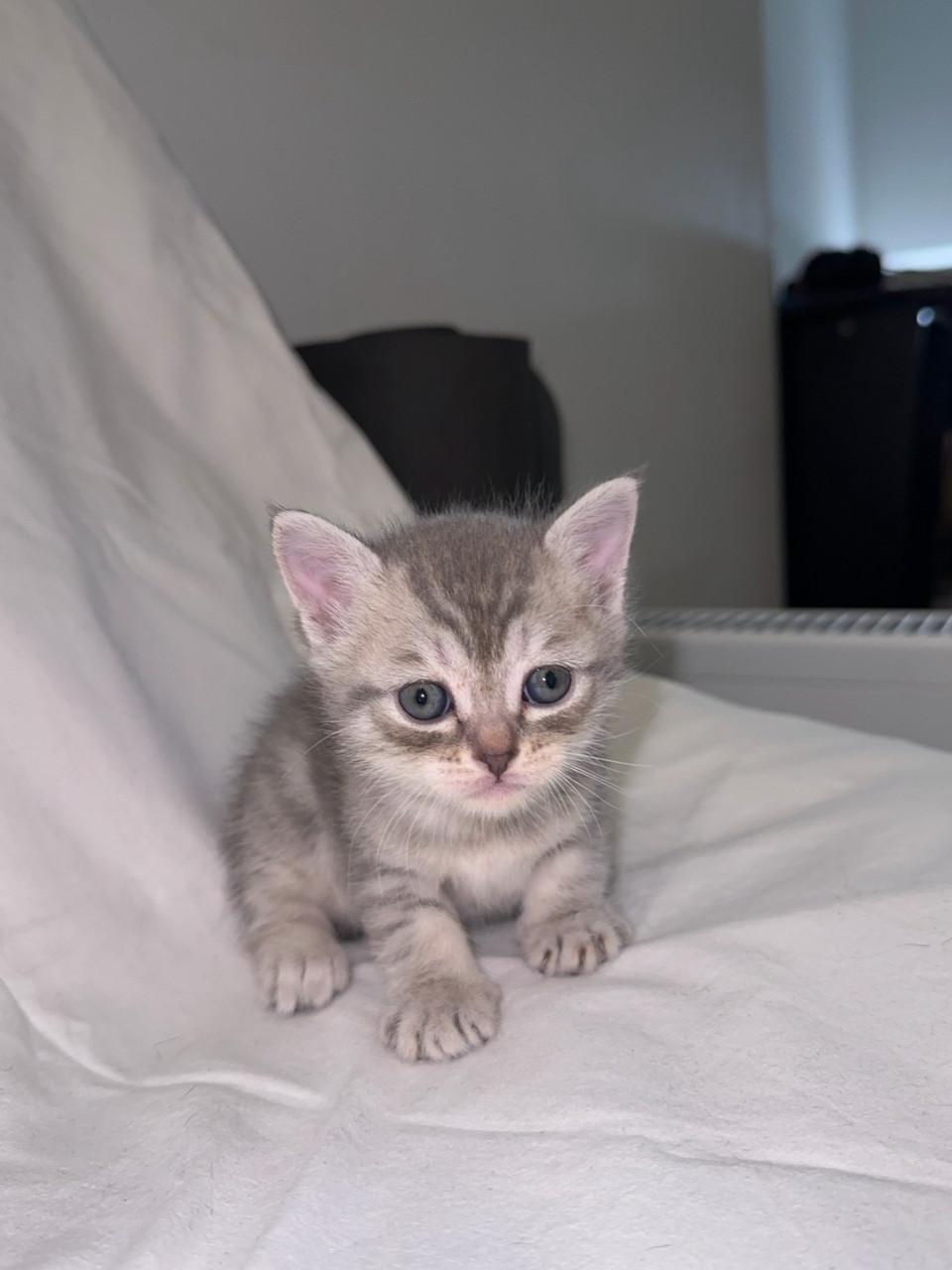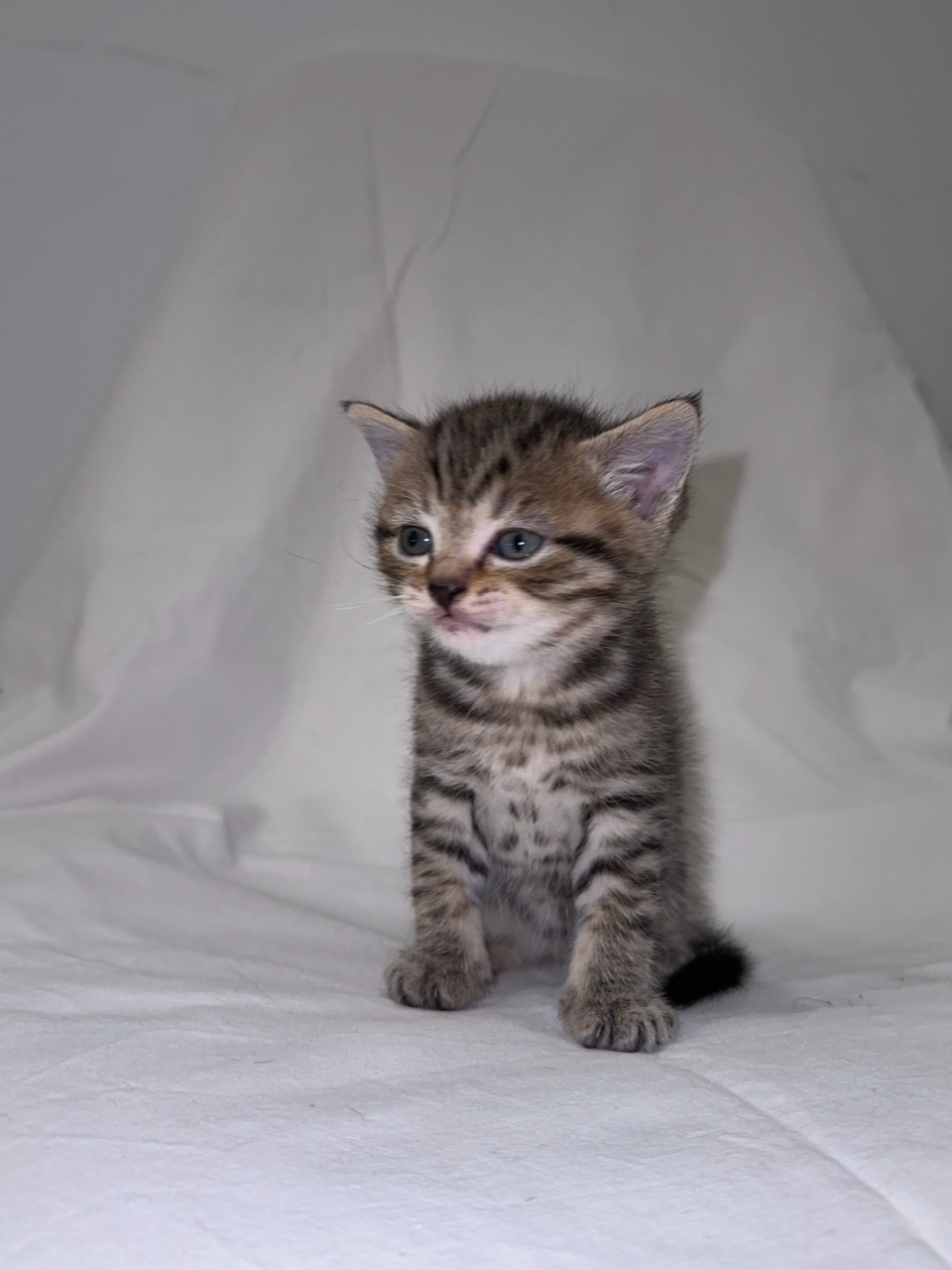 🐾 Нежный хвостик — ходит за вами по пятам, залезает на руки при малейшей возможности. Подойдёт для тех, кто ищет «живой комфорт» и любит обнимашки. Окрас серебристый мрамор, прямые ушки.