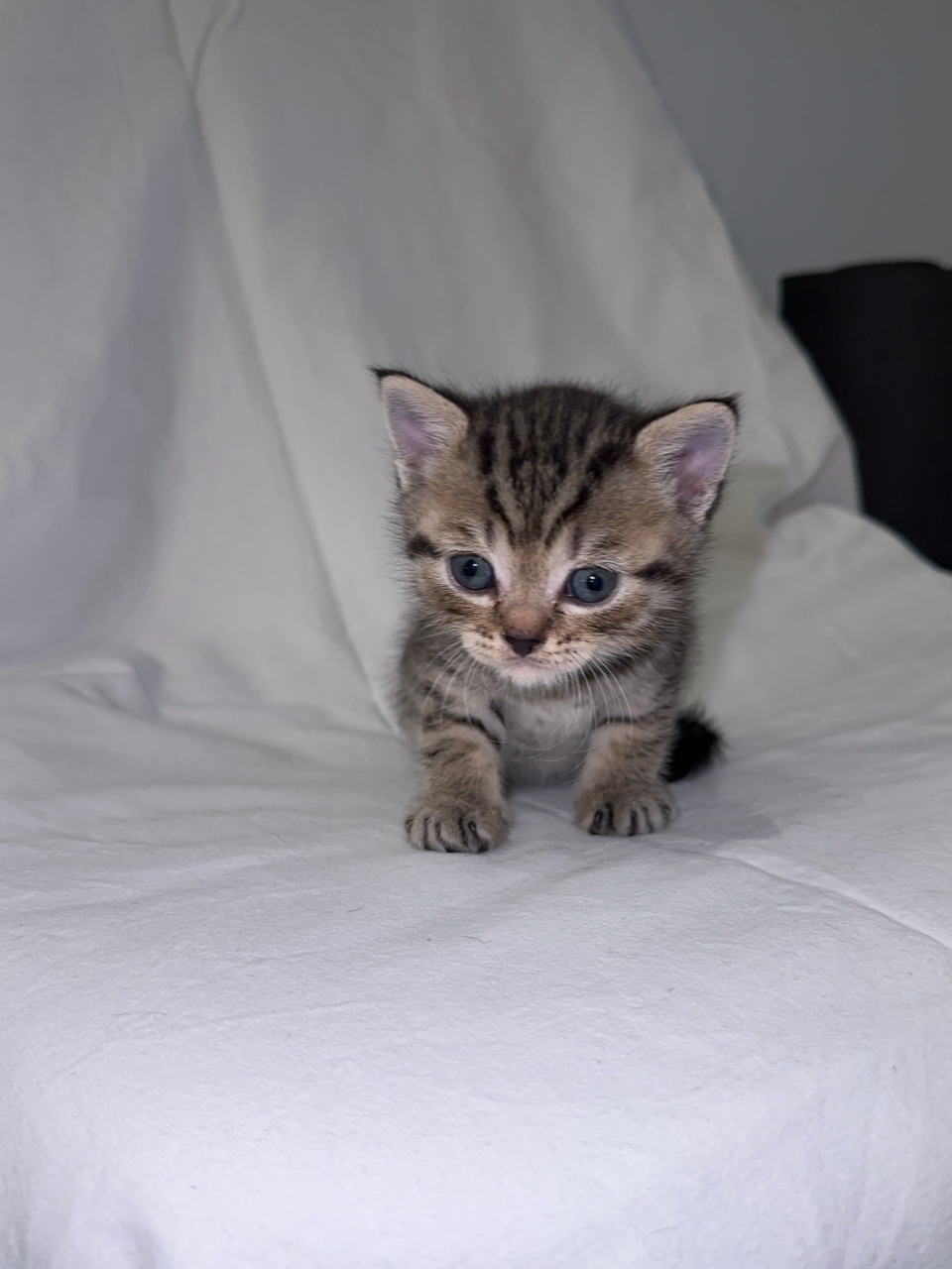 🐾Шторм-непоседа — это ураган в маленьких лапках. Бегает, прыгает, играет, а вы смеётесь. Засыпает там, где его настигла усталость. Идеальный компаньон для активных игр! Окрас золотистый мрамор, прямые ушки.