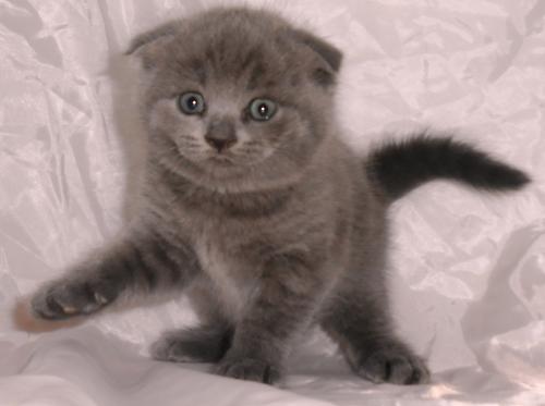 Котик с родословной от выставочных производителей-чемпионов. Имеет отличные породные данные: крупный костяк, набивную плюшевую шерсть и очень обаятельную внешность. Совершенно неагрессивен, что характерно только для чистопородных шотландских кошек.