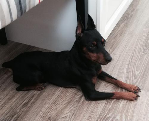 30 ИЮЛЯ 2014 г. в г.Долгопрудном, около дома №15 по Новому бульвару потерялся цвергпинчер, кобель, 2 года, ~30 см в холке, окрас чёрный с рыжими подпалинами, уши и хвост купированы, на животе слева есть клеймо. Дети ужасно скучают по своему другу!!!!
