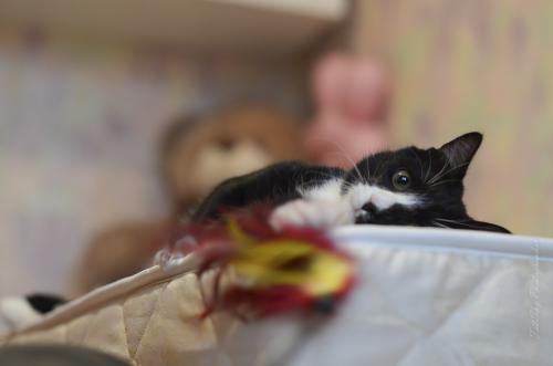 По характеру Дёма дружелюбный, ласковый, мурчливый и очень благодарный, в меру озорной, непосредственный и очень милый котик, который вырастет в шикарного, доброго и основательного кота!