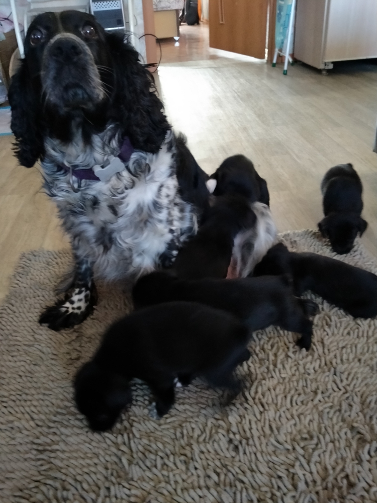 ![]() | русский спаниель3500 7 августа 2016Щенки русского охотничьего спаниеля, девочки, родились 27. 06. 2016 , окрас черный. |
