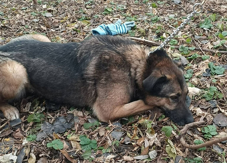 Рэма привязали к остановке одной из деревень Клинского района. Он конечно очень переживал, но не испугался, вилял хвостиком людям. Сейчас Рэмка живе…