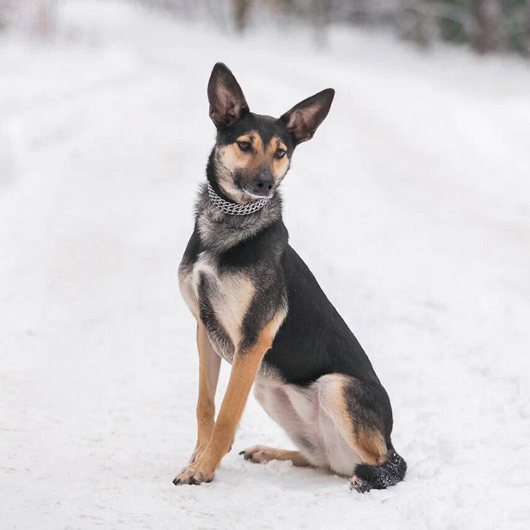 Окрас, как у маленькой овчарки. Стройные, высокие лапы, грациозный поворот готовы и потрясающие уши - красотка!