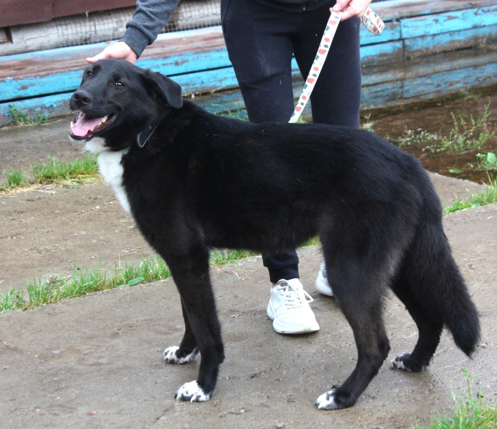 Он точно бывшедомашний, хорошо ходит на поводке и спокойно ведёт себя в машине.
