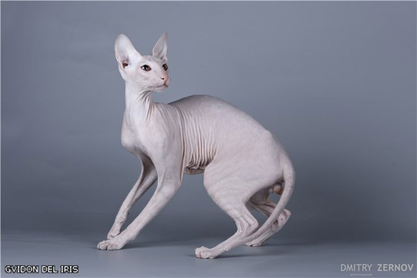 Эту породу, которую нередко называют петерболд, отличает длинное худое тело, большие уши и миндалевидные глаза. Уникальная черта петерболдов – наличие перепончатых ног. Такие сфинксы могут быть полностью лишены признаков шерсти, хотя некоторые виды имеют короткий шерстяной ворс.