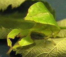 Кто хочет найти саранчу, которая имитирует до мельчайших деталей листочки деревьев, тот должен их искать в семействе Phyllium, в которое входит несколько очень схожих видов. Самый распространенный вид Phyllium bioculatum, проживает в юго-восточной Азии, имеет в длину 7-8см, очень плоское тело, имитирующее очертания и прожилки листьев. Невероятно привлекательное насекомое - саранча с щупальцами семейства Mantodea. Богомолы (Mantis religiosa) из Южной Америки и Южной Европы сегодня самые известные представители этого семейства. Слово "богомол" вводит нас в заблуждение: 5-7 сантиметровая зеленая саранча сидит не шелохнувшись на веточке, подняв крепкие передние конечности, и выглядит так, как будто она действительно молится, но на самом деле она в засаде и выжидает свою добычу, которую молниеносно хватает лапками с маленькими колючками и затем съедает. Богомолы также отличаются каннибализмом: по окончании любовного акта самка съедает своего партнера. И также личинки, которые рассеиваются после вылупливания, съедают друг друга, если случайно находят друг друга.